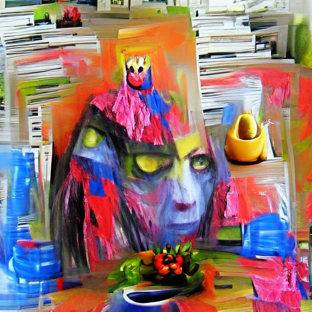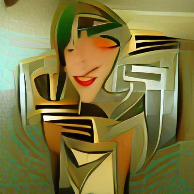 Not so fast. Human creativity came up with the code, the logic that Is the AI. Humans”taught” it how to render various terms like “colorful,” “art deco,” “abstract,” etc. And I (human) used my agency to decide what words to combine. In a sense, we have loaned our imagination, creativity, agency and skill to the AI. A (probably large) group of people have all collaborated to make this machine processed art synthesis.